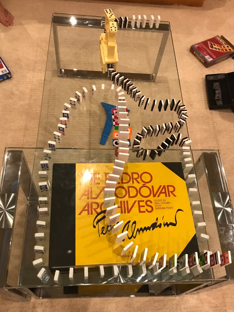 Rainy most of the day, so time for work, stretch, slime making and perfect our domino circuit. Tennis and excercises later today. I’m off to take Athena back to college( 😫😩