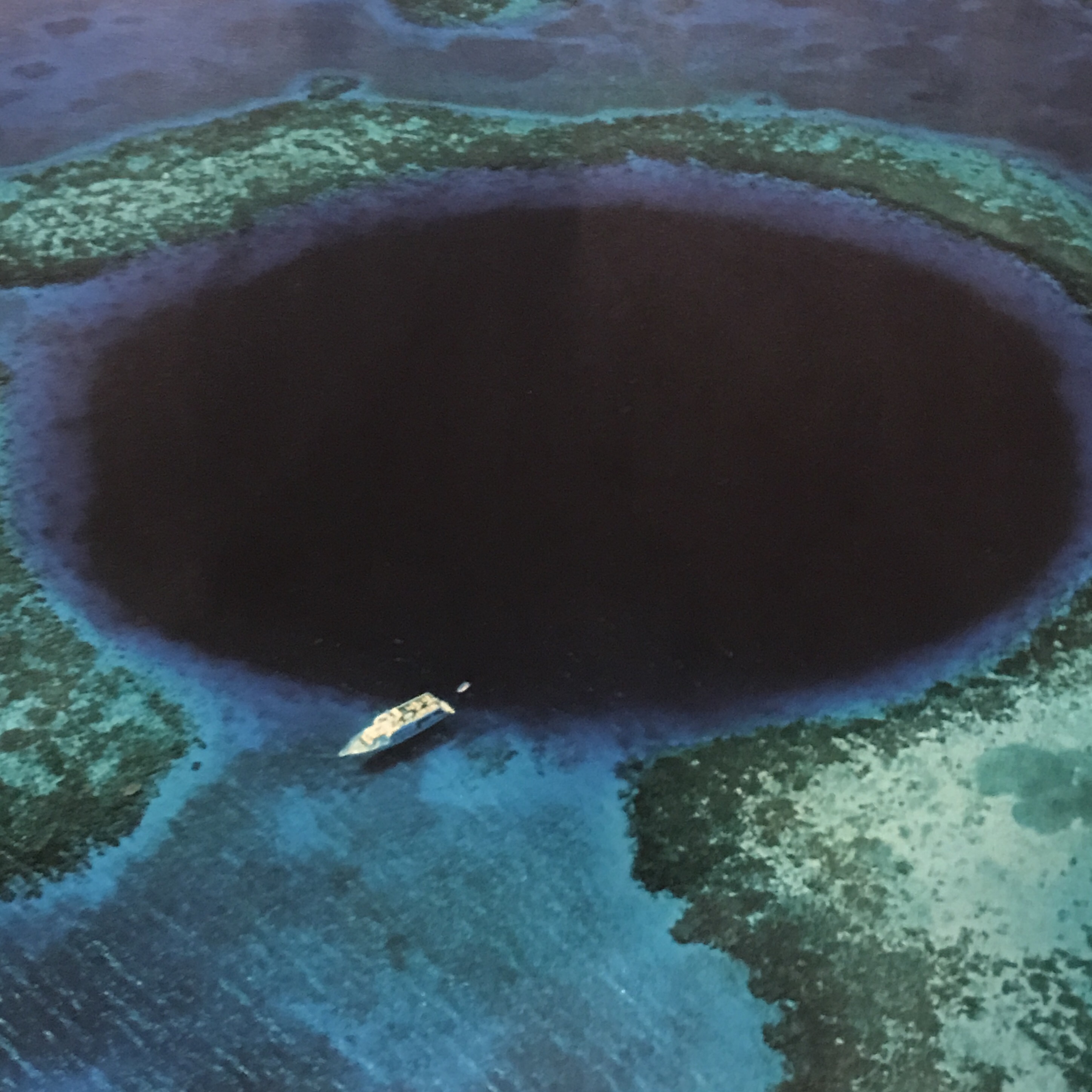 The great blue hole is a giant sinkhole of the coast of Belize. It is near the center of Lighthouse reef, a small atol 70 miles from Belize city. It’s a world heritage site (UNESCO). Circular in shape, its over 410ft deep and 1000ft wide. The sinkhole originally formed as a limestone cave during the last glacial period!! Had to show you a picture from my guide book of how amazing it looks, you need an Ariel picture to do it justice! Marine life around the coral was amazing with color and sea life but in the center it was dense clear water that went down as far as the eye could see. π³![]()