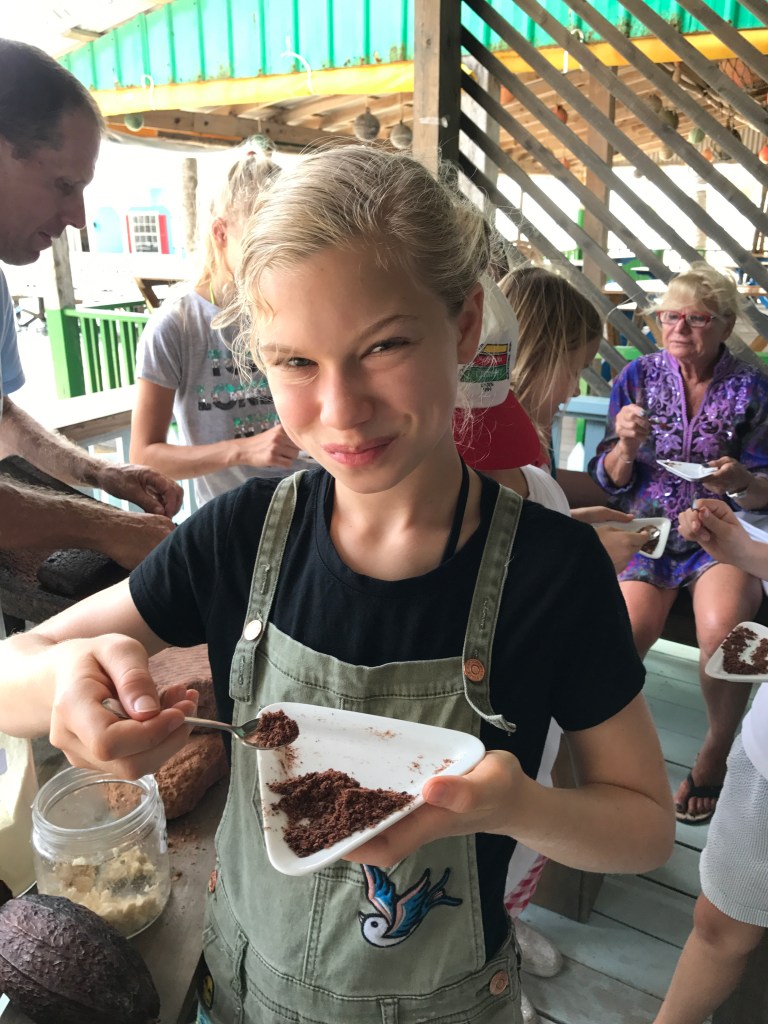 Packed day visiting Hol Chan marine reserve filled with color and acquatic life, sting rays, eels and reef sharks. Then shark alley filled with nurse shark that swam all around us. Finally, chocolate making class. Did you know the Mayans traded 3 beans for one egg and 100 beans for a live turkey!! Most belizian cocoa trees are organic and free trade owed by small farmers. Each region has its own particular taste ( citrus, woody, fruity or earthy). YUM more please🙏