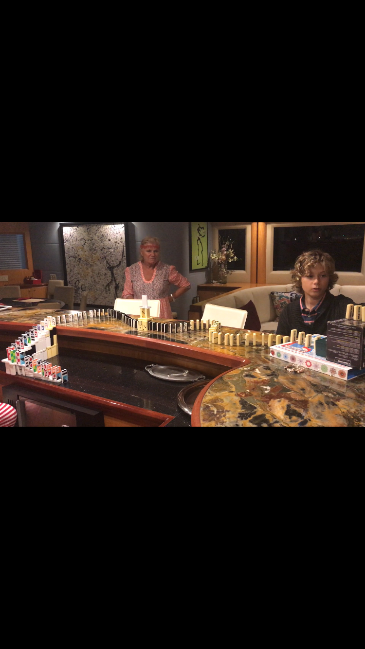 Thankfully we are travelling 30 hours in calm flat seas. Our routine is home work, journal, excercise( ballet and strength training for Uma) and reading daily, but on days that we are at sea we add cooking, movies,board games and hours mesmerizing at the vast open ocean, sky and stars! Learning the constellations is a endless challenge.
