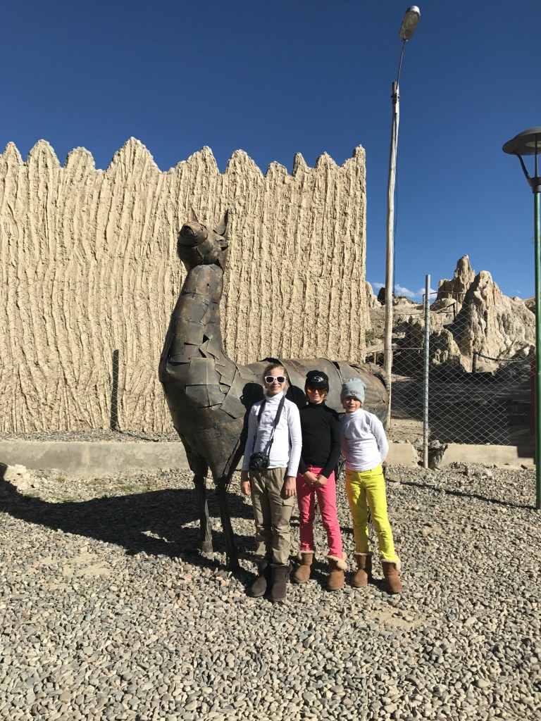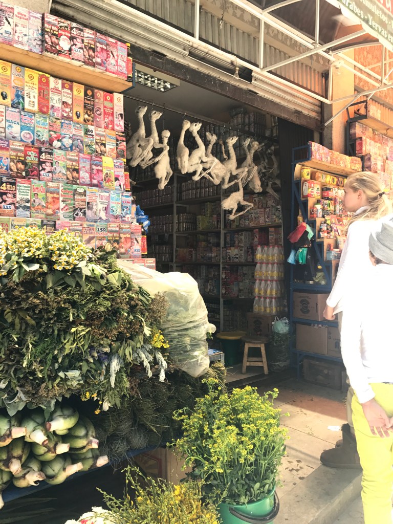 4.02 am arrival and we are hit with little oxygen and dry air. Walking to baggage pick up we are huffing and puffing.😩4150 meters ( that’s 13,615feet) Higher than Cusco! El Alto is where the plane landed, the city La Paz is the highest city in the world. Did you know it takes 3 generations to acclimate to this altitude ??Locals here have bigger hearts and lungs. With 4 hours of sleep we set off for a full day tour of the city. First the cable car station for a scenic view of the city and surrounding mountains. They are the modern and efficient transportation system implemented 4 years ago. Then the witches market, full of herbs and magic charms( also llama fetus that they bury under their homes for luck), government palace, gold museum, and cathedral of San Francisco. Finally, the valley of the moon, where rock formations carved by wind and rain have created a lunar landscape. A few bottles of oxygen, coca leaves, coca candy and Coca tea( all meant to help with altitude sickness) and some sleep was how we finished our day.
