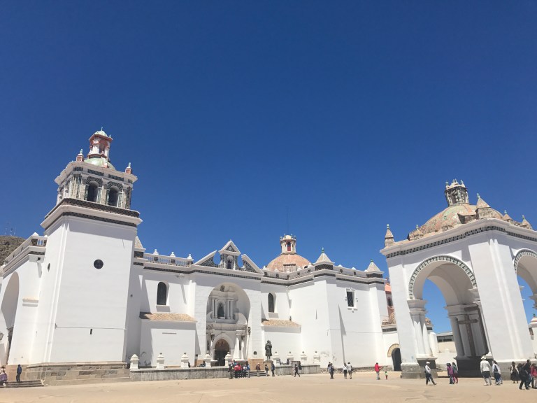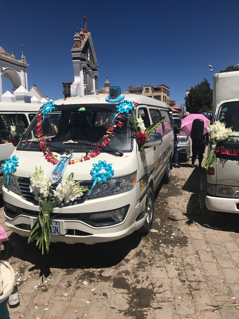 Early morning to Copacobana( which means view point of the lake). The town has a large 16th-century shrine, the Basilica of Our Lady of Copacabana. Our Lady of Copacabana is the patron saint of Bolivia. The town is a destination for tourism in Bolivia. The town is also known for its famous Basilica, home of the Virgin of Copacabana, its trout, and its quaint atmosphere. Many people come to get their cars blessed by the towns priest. We crossed Lake Titikaka ( meaning puma rock and the largest lake in South America)by ferry to Sun island where The Inca civilization began. The sun temple was where they made pilgrimages from all South America to offer to the Sun God. A 250 step climb to the top (4080 meters!) to see a magnificent view of the lake and some of the 72 islands in the lake. ![]()