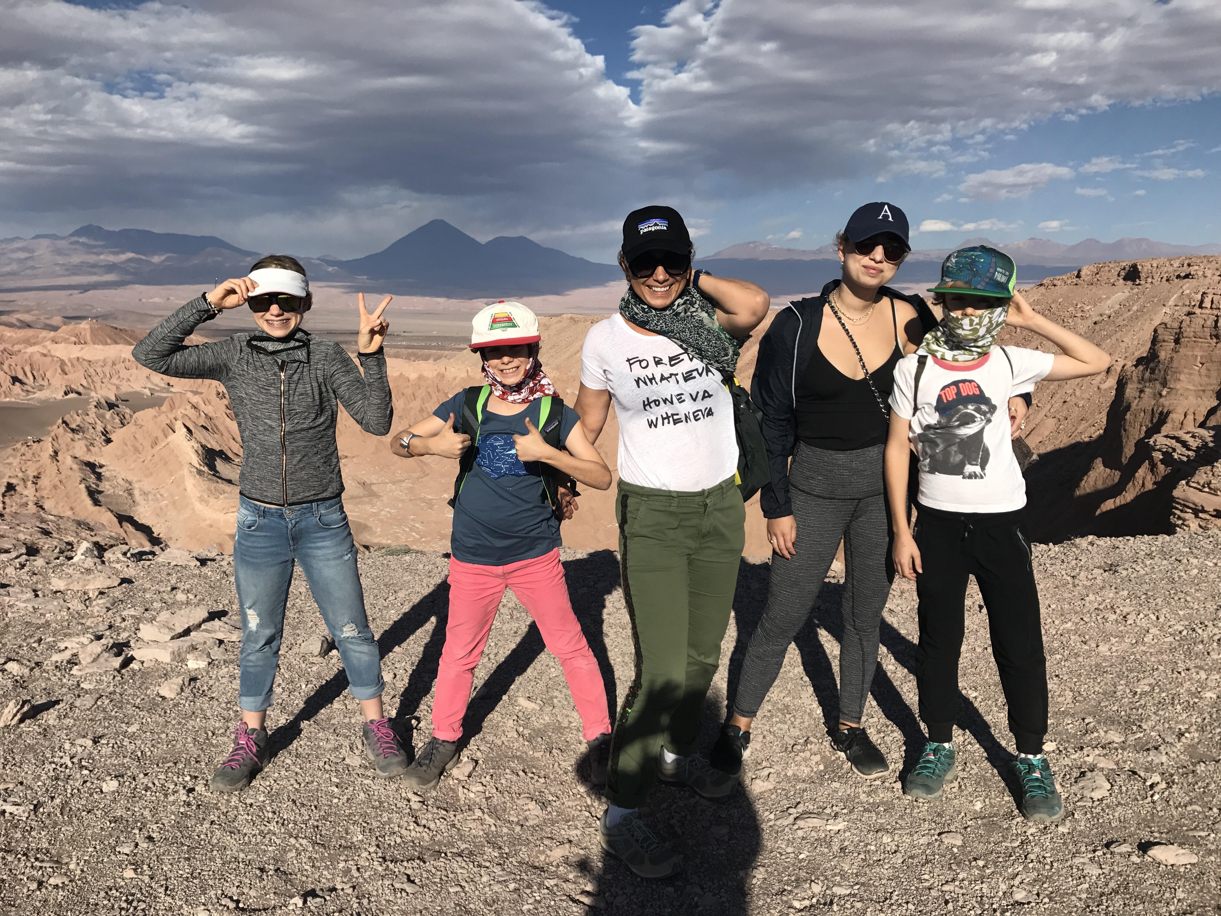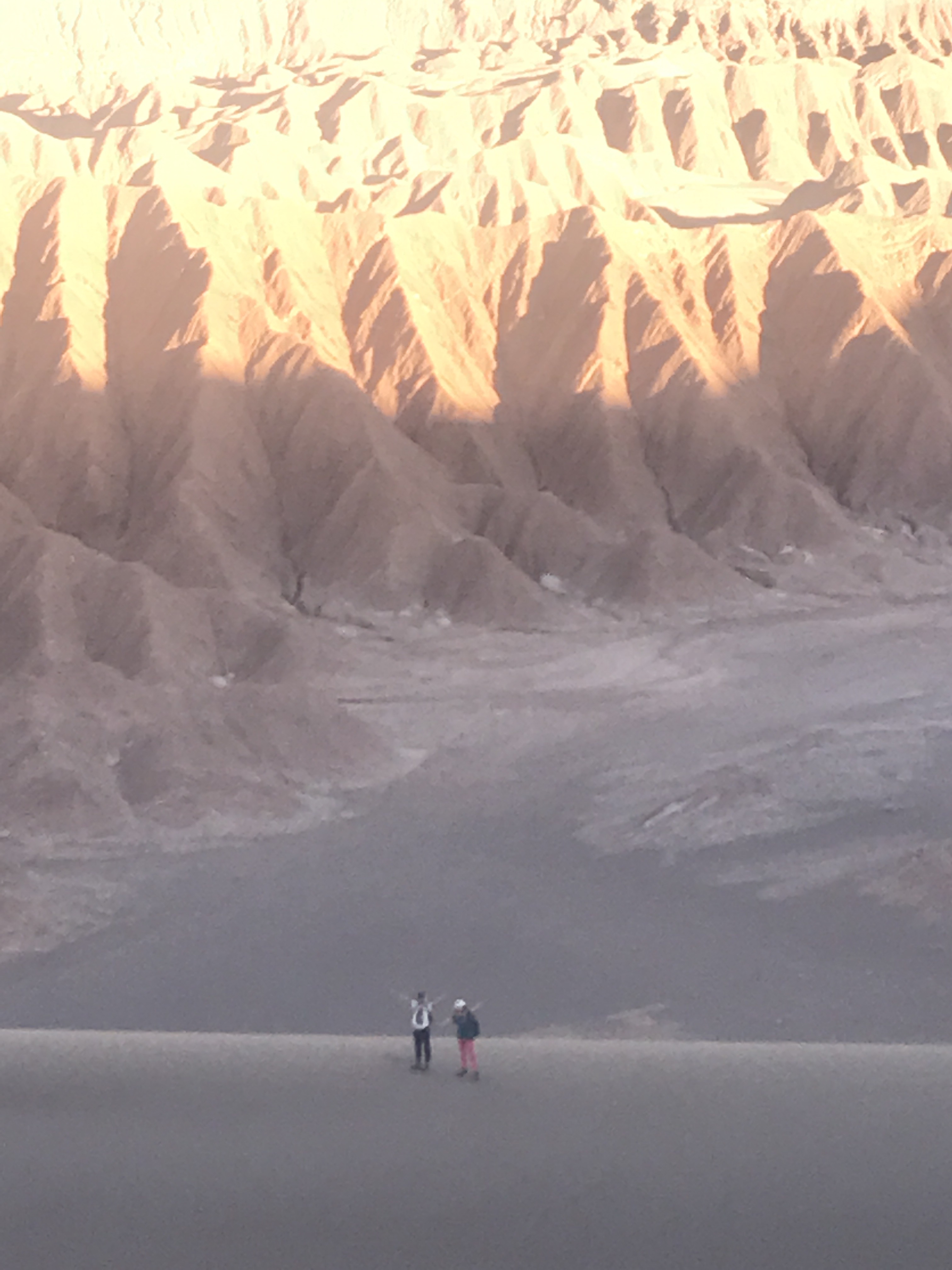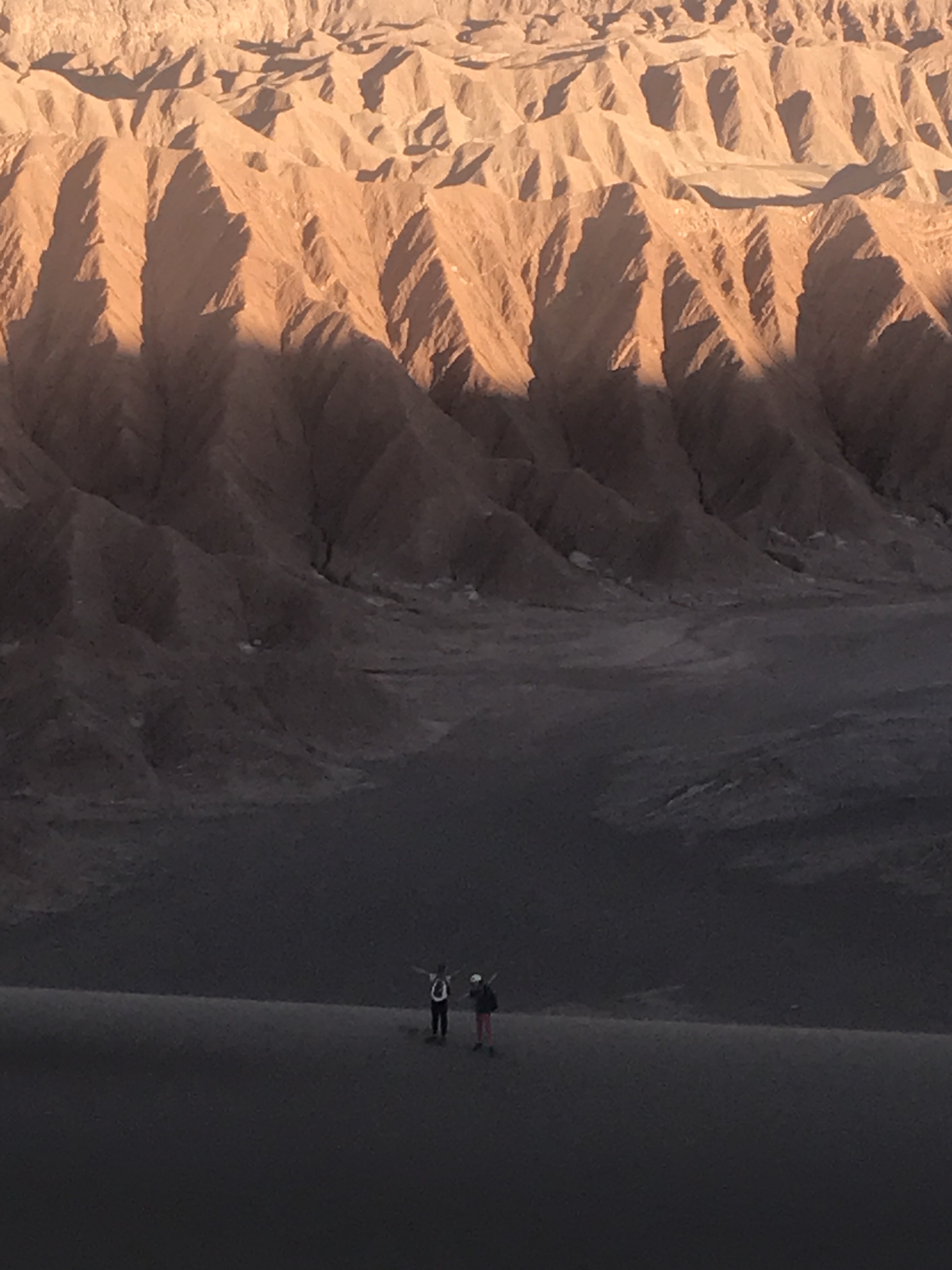 2 hours North by plane border to Bolivia is the magestic Atacama desert, salt flats( not as big as Uyuni), Andes mountain chain and several active volcanos. This area only gets 3 days of rain( 10 mm) a year!! The formation of Death Valley area are a result of the continental plates hitting into one another. Originally it was the Atlantic Ocean, over thousands of years it dried up into this desert. We all had so much fun running down the sand dunes!! it took quite a job to remove all that sand though😩