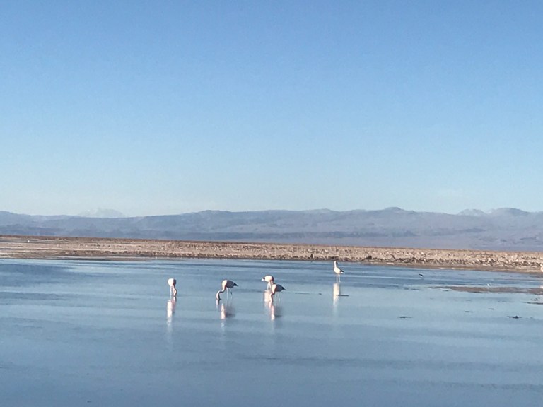 Morning horseback riding through Death Valley, dip in the pool to cool off and then off to San Pedro town to see the oldest bell tower and church built in the 1570’s by the Spanish. The wood used for the ceiling and roof are made from cactus. All homes in this area are adobe ( hand made blocks of mud, straw and clay). Then finally, the salt flats to see the sunset (here is the second largest and Argentina has the third largest). The flamingos migrate here for the brine (shrimp). Did you know flamingos weigh only 1 kilo(2.2lbs), only lay 1 egg, start flying at 4 months and feathers turn pink by 6 months?? Learning new things everyday!! Fynn