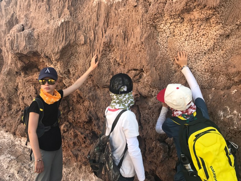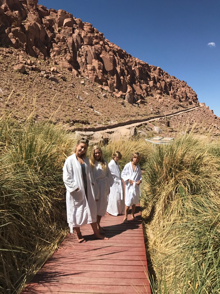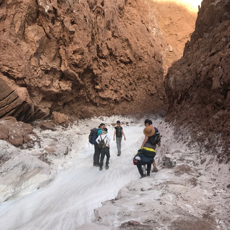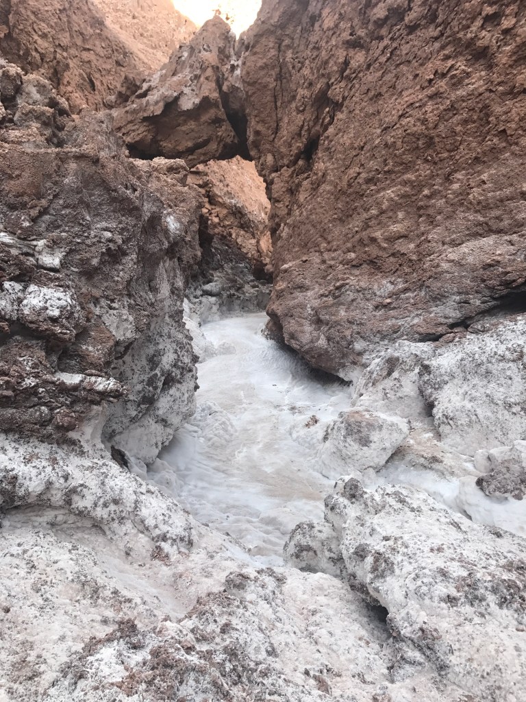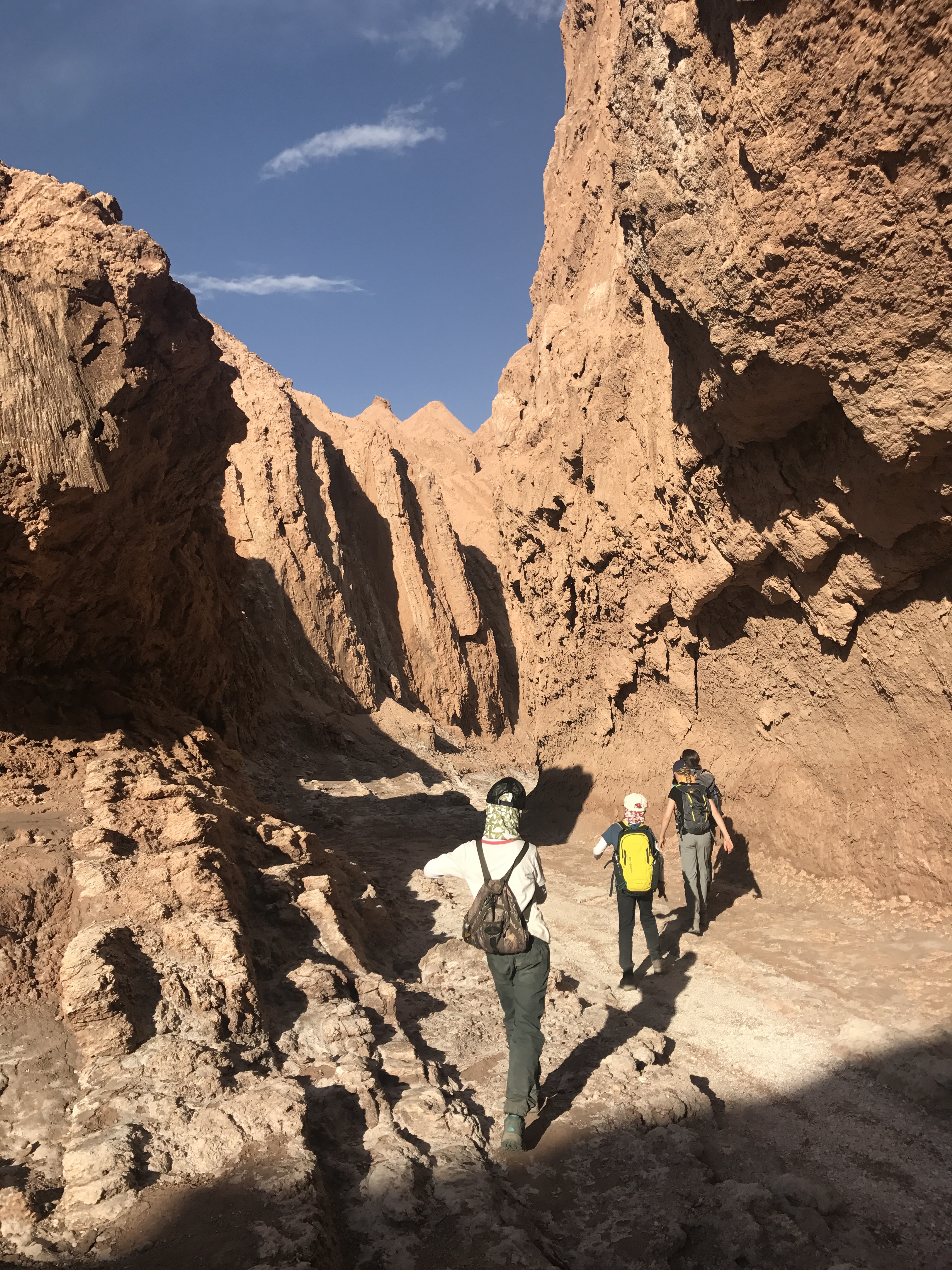 Awesome hike of 4 miles to a natural hot spring.We climbed over rocks, crossed rivers, gorges to arrive at a breathtaking pools of spring water naturally heated to a delicious 91 degrees. Puritama Hot Springs is a series of eight large pools of geothermal spring water located at the bottom of a canyon in the Atacama Desert, in the Antofagasta Region in the north of Chile. It is located at an altitude of 3,475 meters above sea level. After lunch and a much needed siesta we headed to Kari Located just outside of San Pedro de Atacama, Moon Valley (Valle de la Luna) is a protected nature sanctuary that is part of the National Flamingo Reserve (a national park). Within a small area, we saw many incredible geological formations – the results of thousands of years of interaction between rocks, minerals, and wind. The salt river has dried up leaving an illusion of snow or white icing. Really beautiful and a great 8 mile hike. We finally end at moon valley, Aptly named, while you gaze out over Moon Valley, you will feel like you’ve departed our planet and landed on a lunar landscape!