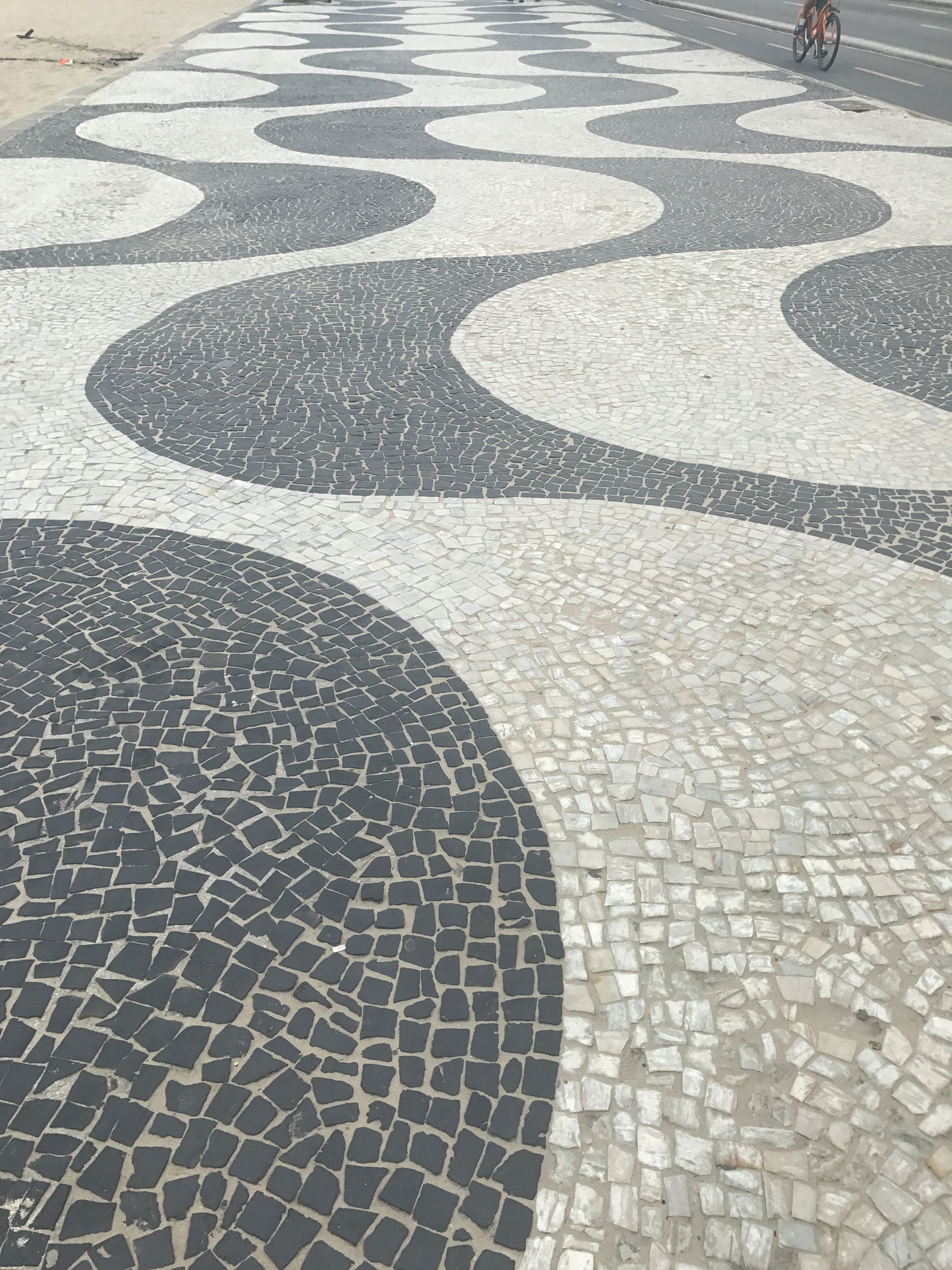 P.S Portuguese pavement is a traditional style pavement used for Many pedestrian areas. It consists of small flat pieces of stone arranged in a pattern or image like a mosaic.Rio de Janeiro has 3,000,000 ft.² of mosaic sidewalks consisting of the worlds most remarkable specimen of the art of Portuguese pavements!!