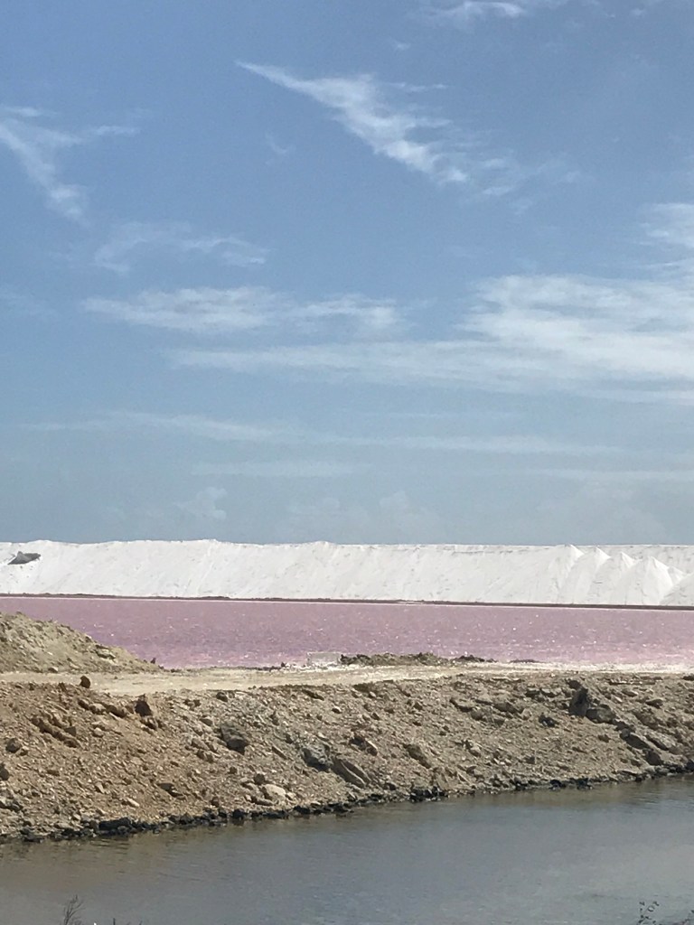 Salt has been extracted on Bonaire for centuries. By leaving saltwater in salt-pans and allowing the water to evaporate, salt is extracted using a fairly simple procedure. These activities mostly take place on the south western part of the island. During the 14th century, demand for salt in Europe increased drastically when William Beukelzoon, From the Netherlands discovered how to properly gut herring. He found that if herring was relieved of its gills and intestine, but not of its pancreas and then salted it remain fresh for much longer. This major step forward in food processing and the demand for salt also shot up. Large amounts of salt were imported from Spain and Portugal until this became impossible because of the 80 year war. After 1600s more than 100 Dutch ships set sail for the Caribbean each year returning with more than 300,000 tons of salt between them. Slavery was abolished in 1863, ( those white slave houses in the pictures slept 6 people per house!!!) making salt extractions much less feasible and virtually putting an end to it. In 1966, the production of salt restarted and in 2000, salt production Rights were sold to the American Cargill Corporation. The colors were are created by different bacteria that are able to survive in varying salt content. These salts pans are an excellent example of economic and ecological harmony. The area is a flamingo reserve and is the most significant flamingo breeding area in the southern Caribbean.